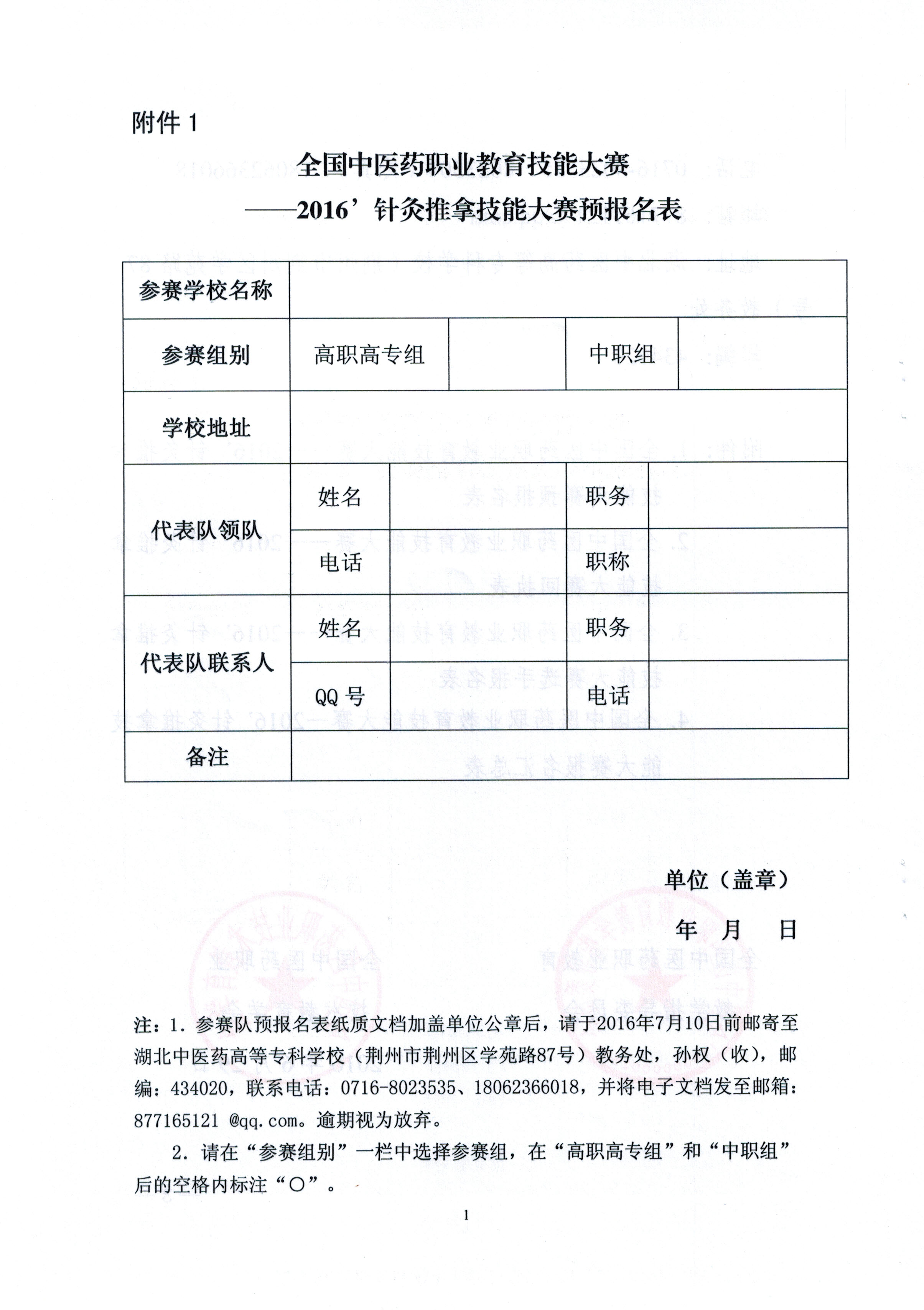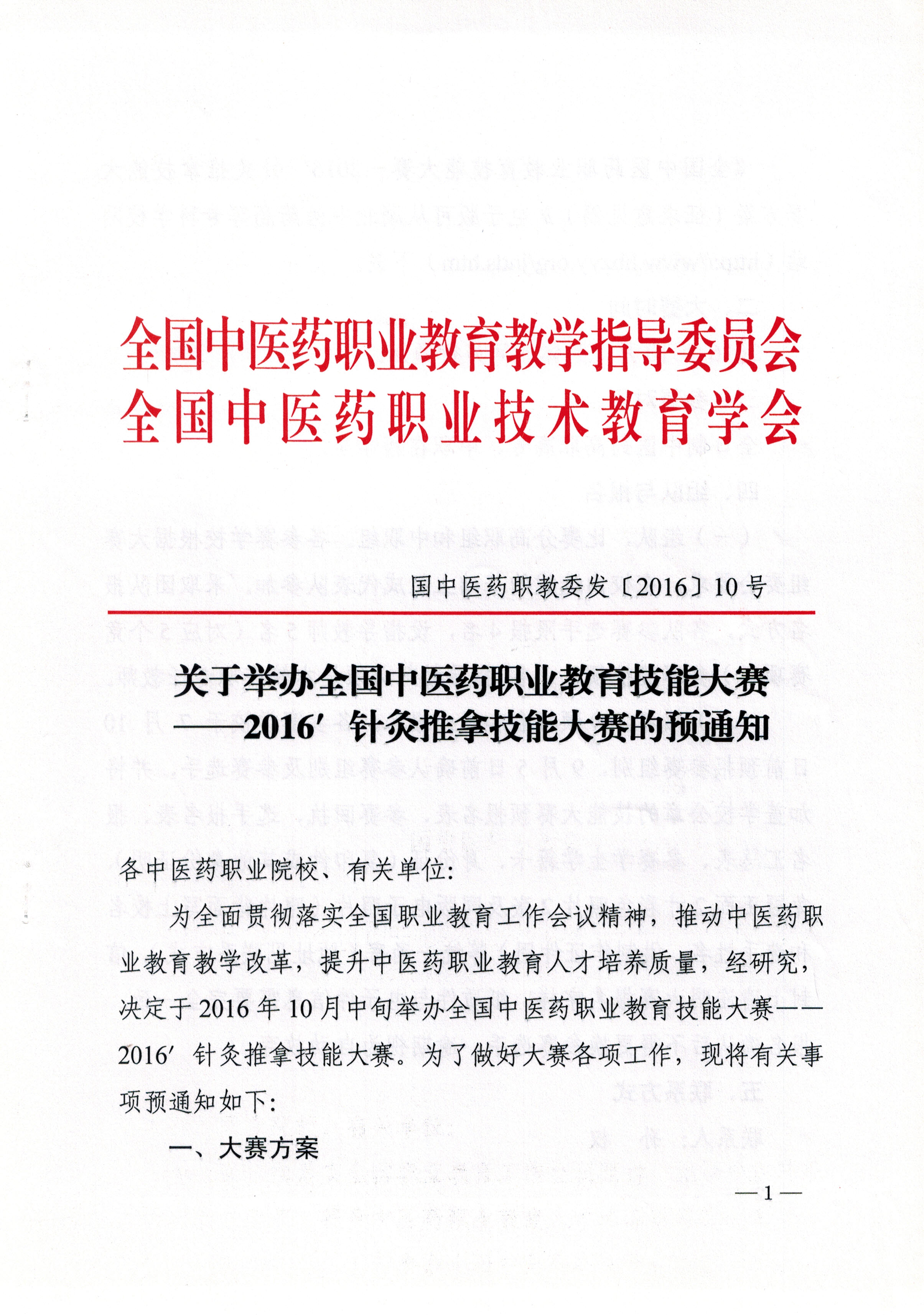 关于举办全国中医药职业教育技能大赛——2016′针灸推拿技能大赛的预通知